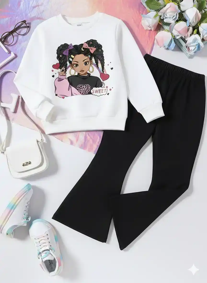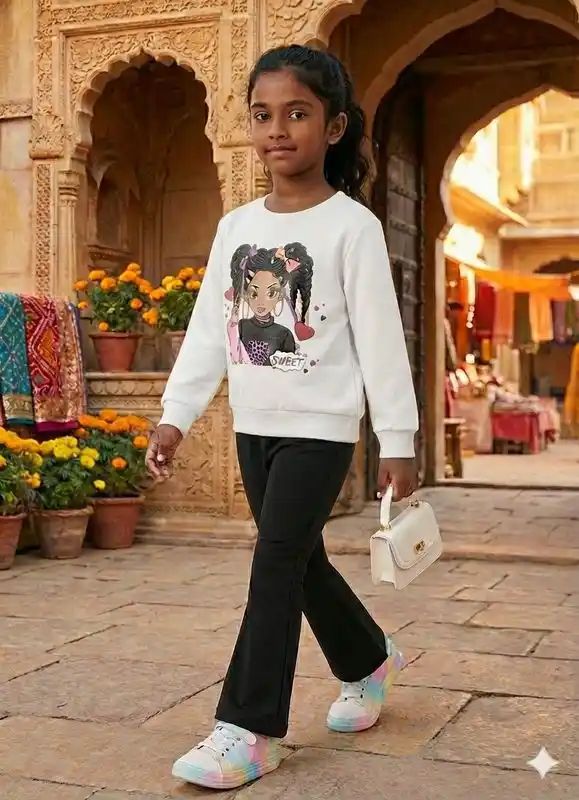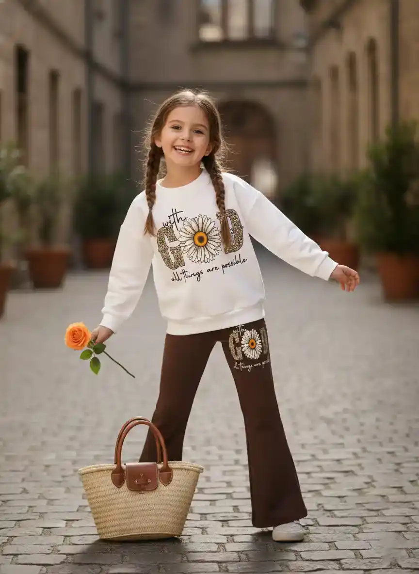 Sweet Girl White & God Broun Girl Top and Bottom Set For Girls