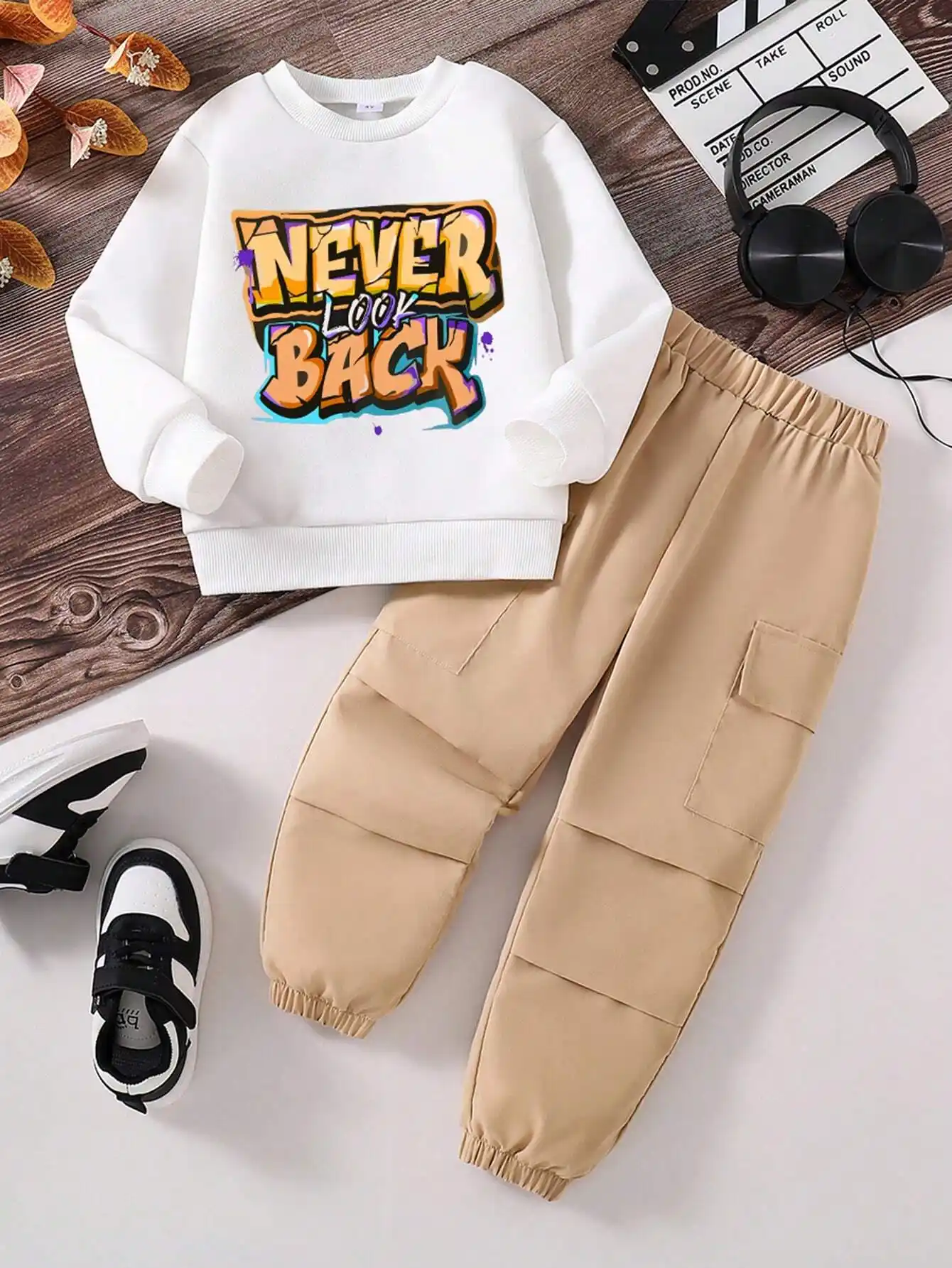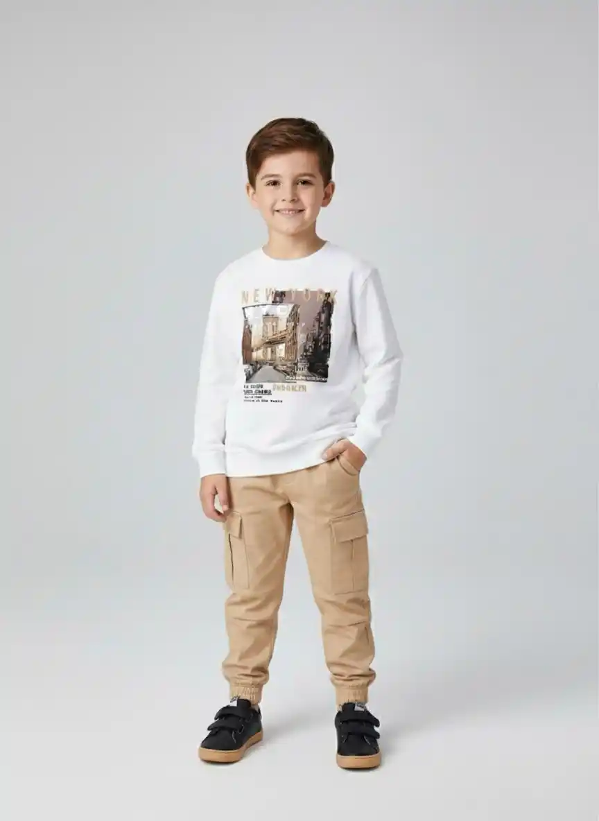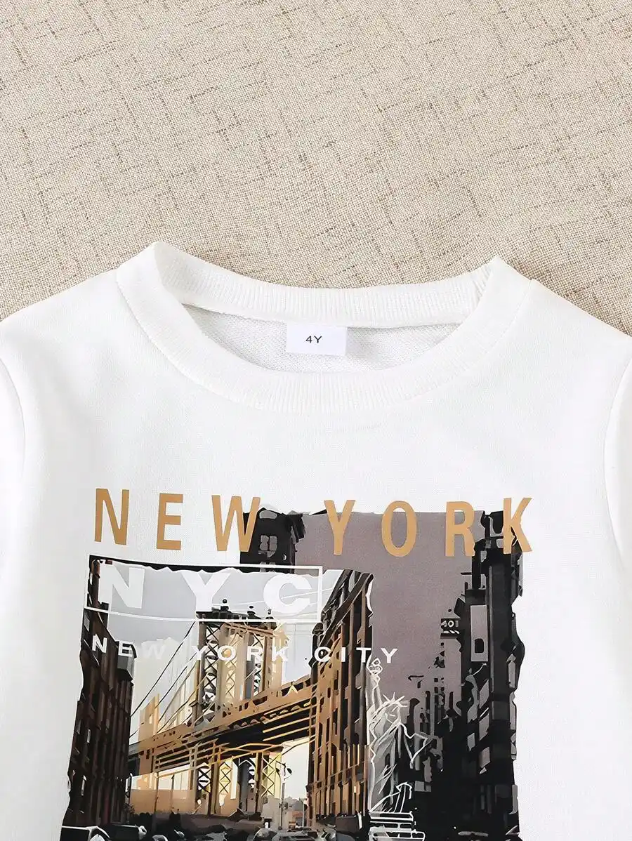 New York City White Printed T-Shirt and Brown Color Joggeres Set for Boys